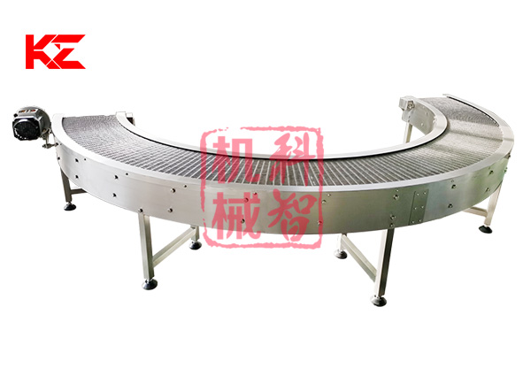 轉(zhuǎn)彎輸送機(jī)采用的形式有:網(wǎng)帶轉(zhuǎn)彎輸送機(jī)、鏈板式轉(zhuǎn)彎輸送機(jī)、皮帶式轉(zhuǎn)彎輸送機(jī)、鏈桿式轉(zhuǎn)彎輸送機(jī)、塑料模塊式轉(zhuǎn)彎輸送機(jī)等。轉(zhuǎn)彎角度有45度、90度、180度等等。轉(zhuǎn)彎食品輸送機(jī)的寬度和轉(zhuǎn)彎半徑均可根據(jù)需求定做。